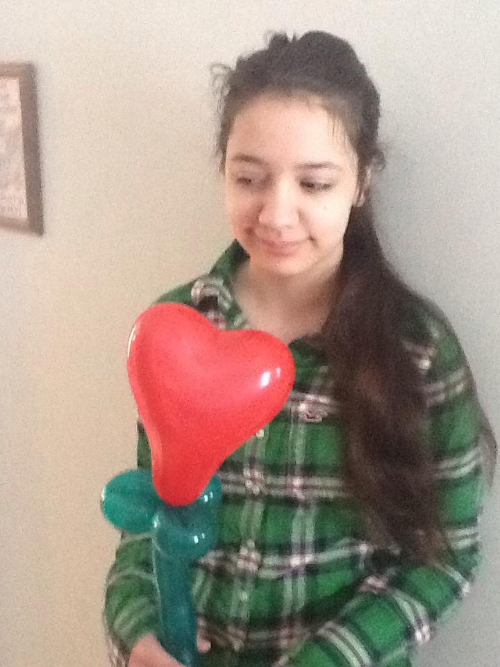 Young lady with heart on braided stick