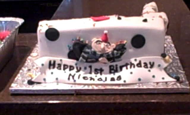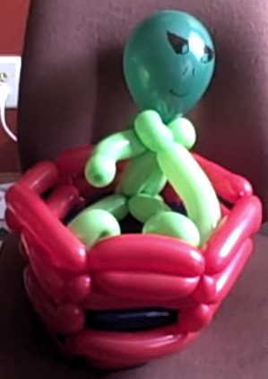 For Kai’s birthday party, with a Despicable Me theme, an alien in a saucer for the kids to “shoot” with balloon arrows – “knocked over!”