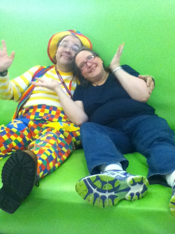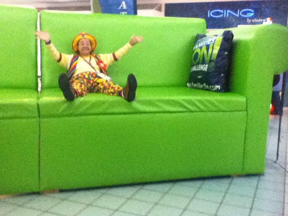 Raynbow and Goofy Grape on the giant couch in Davenport