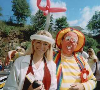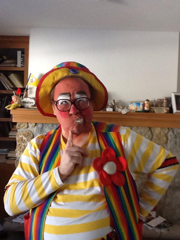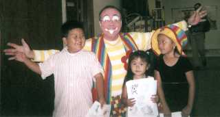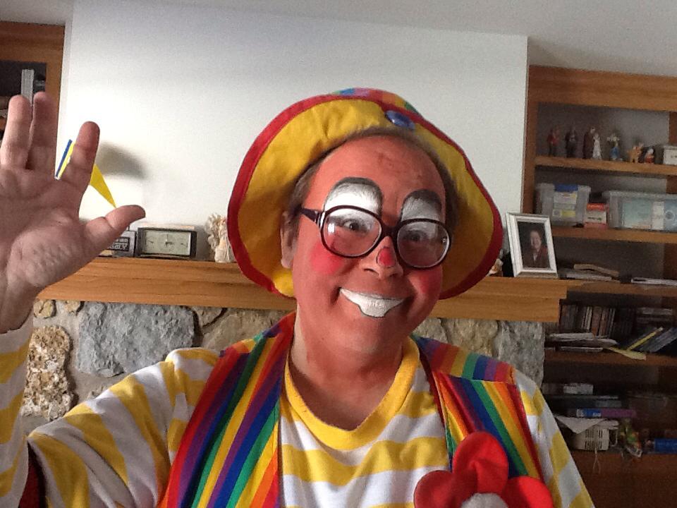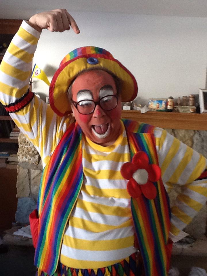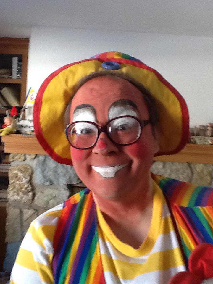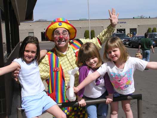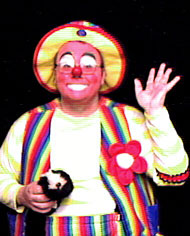 Raynbow the clown and his spring puppet friend, Mr. Kitty